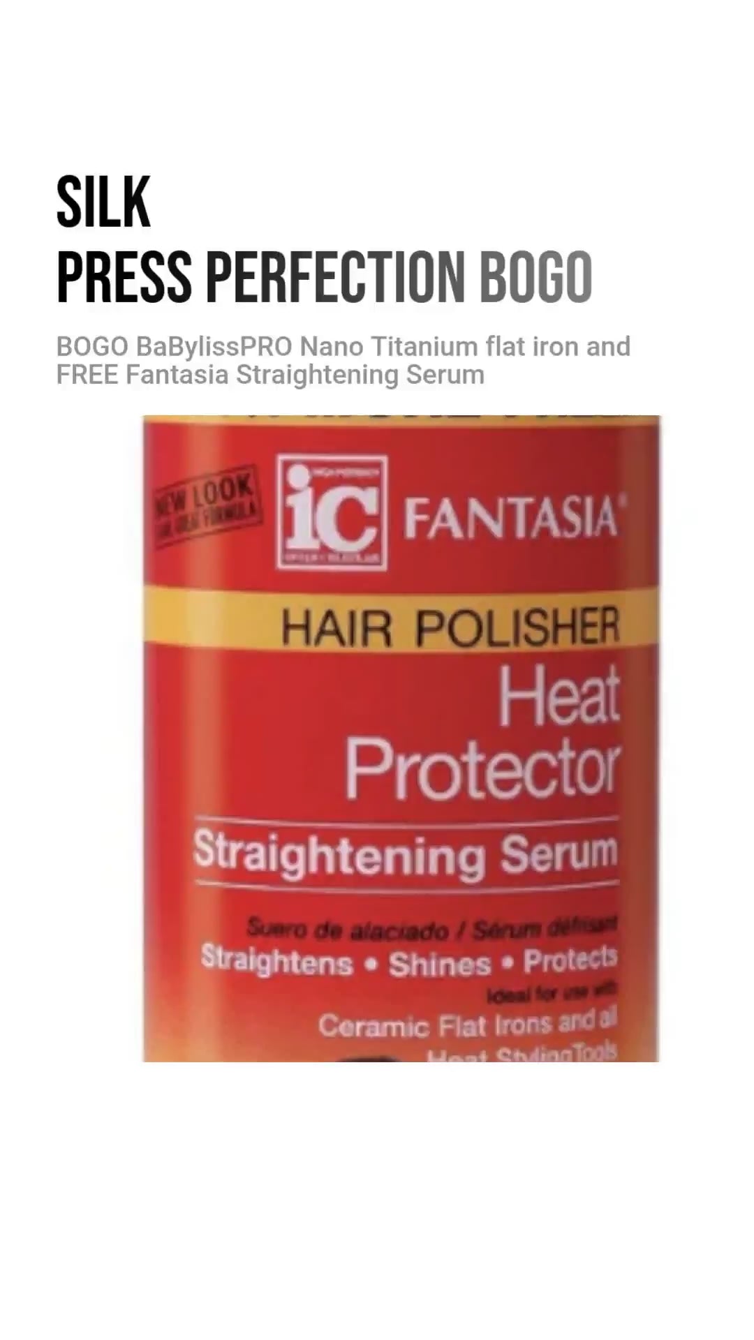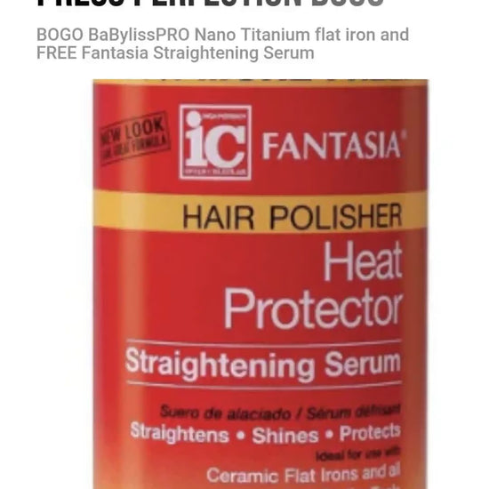 Experience the ultimate Silk Press Perfection with our exclusive bundle — the BaBylissPRO Nano Titanium Flat Iron paired with a FREE IC Fantasia Heat Protector Straightening Serum. Designed for women who love sleek, salon-quality results at home, this duo gives your hair the luxury treatment it deserves.