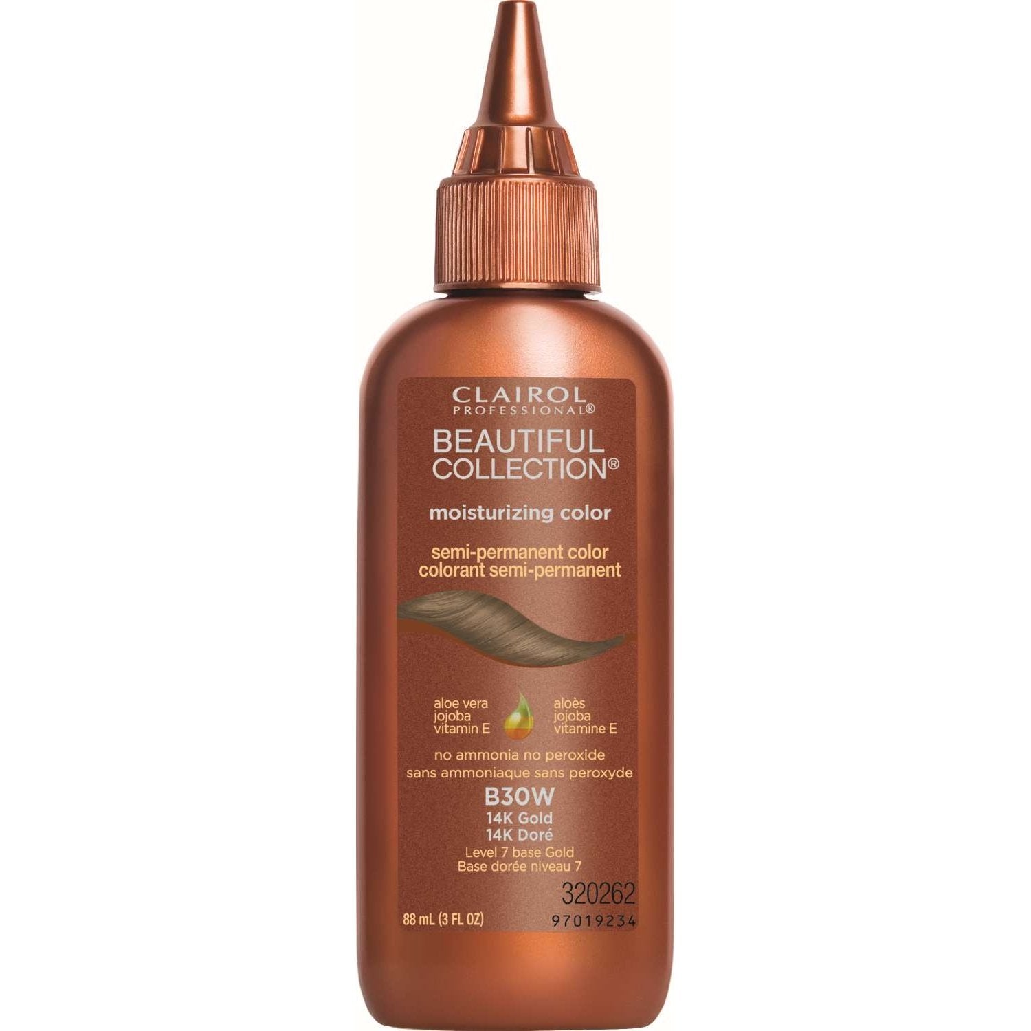 Say goodbye to gray strands and give your hair a boost of color with Clairol Professional Beautiful Collection Hair Color 30 14k Gold. Enriched with the goodness of aloe vera jojoba oil and Vitamin E this vibrant semi-permanent moisturizing hair color has been formulated to provide your locks with deep nourishment and conditioning while enhancing its luster.