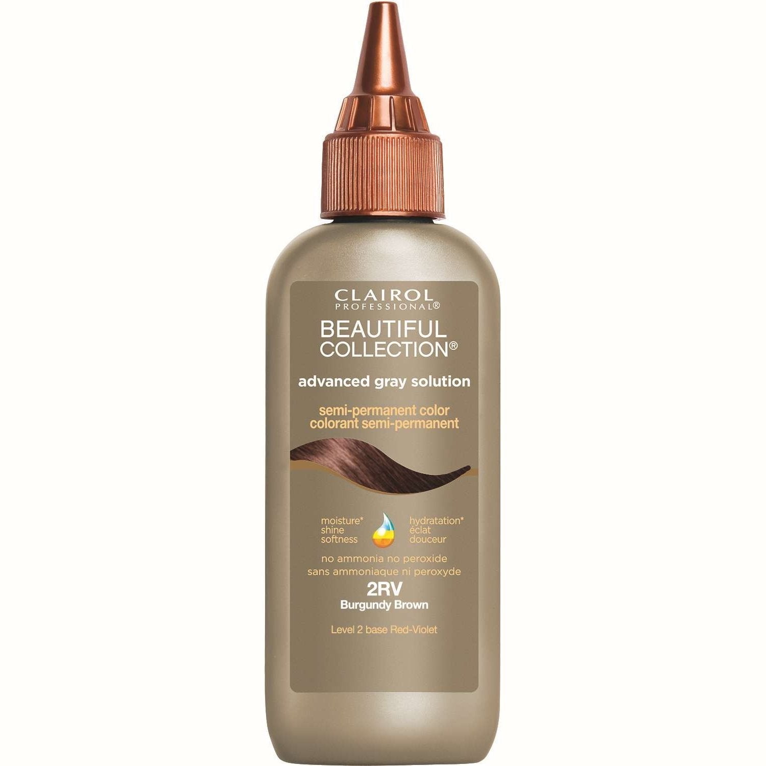 The Beautiful Collection Advanced Gray Solution 2RV in the shade Burgundy Brown is a semi-permanent hair color. It is designed to cover gray hairs and give your hair shine and moisture that lasts for 12 washes. The product is easy to use and gives you results in just 25 minutes.
