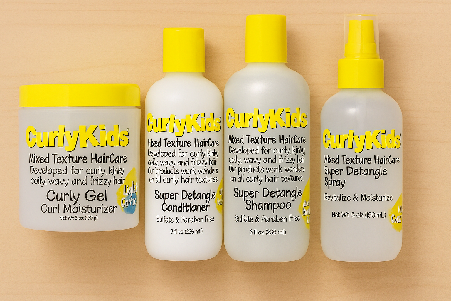 Detangling shampoo is a great product for your childs curly hair. It helps to reduce breakage promotes healthy hair growth and gently cleanses the scalp and hair.