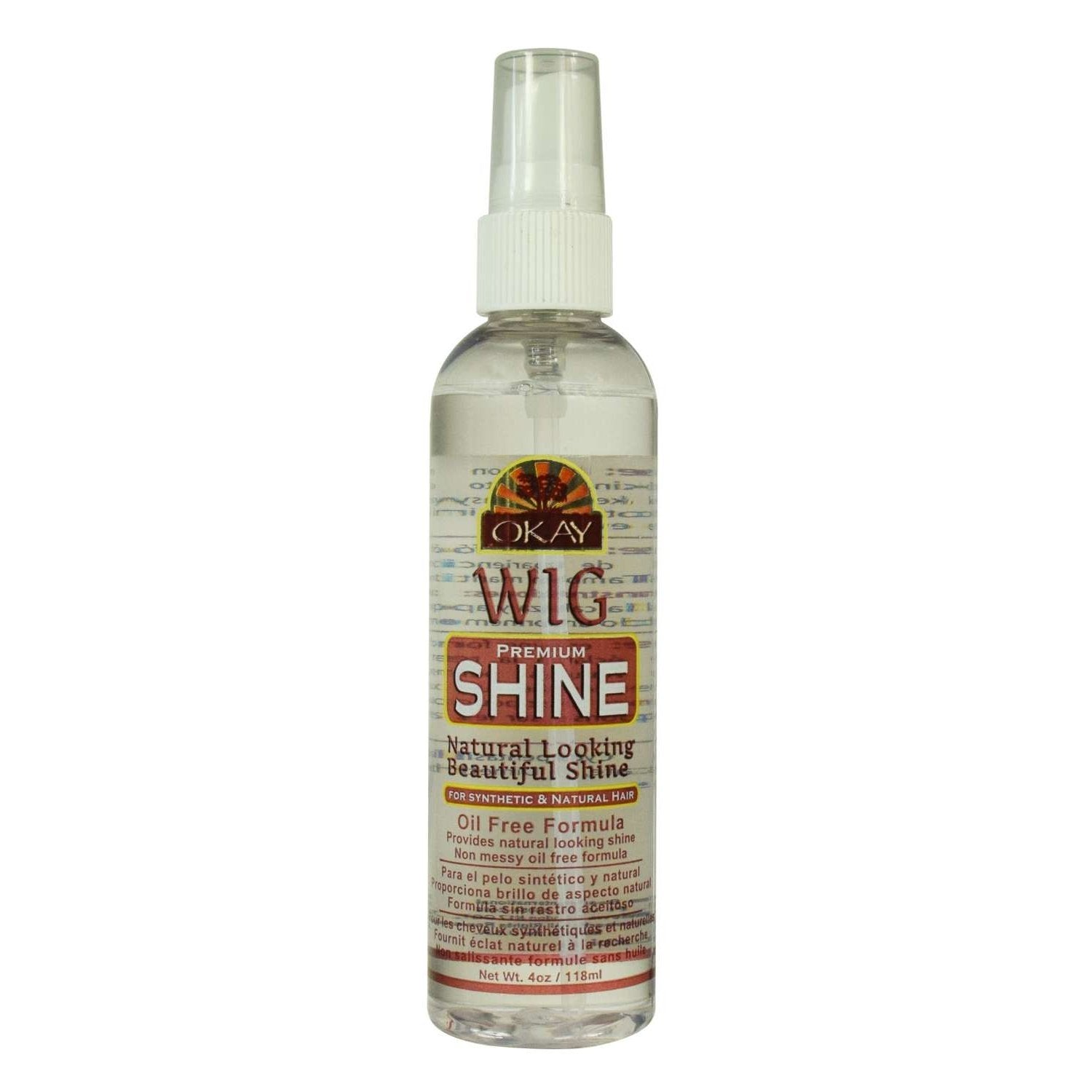 OKAY Wig Shine has a distinct light combination of components devised and created to give human and synthetic hair wigs the best shine possible. It absorbs rapidly making hair super buoyant and flowy without being greasy